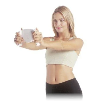 - Instruct the participant to stand and hold on to the monitor as shown in the pictures here. Arms should be straight at chest height. Palms should make good contact with metal on device.- Press the Start button to activate the monitor